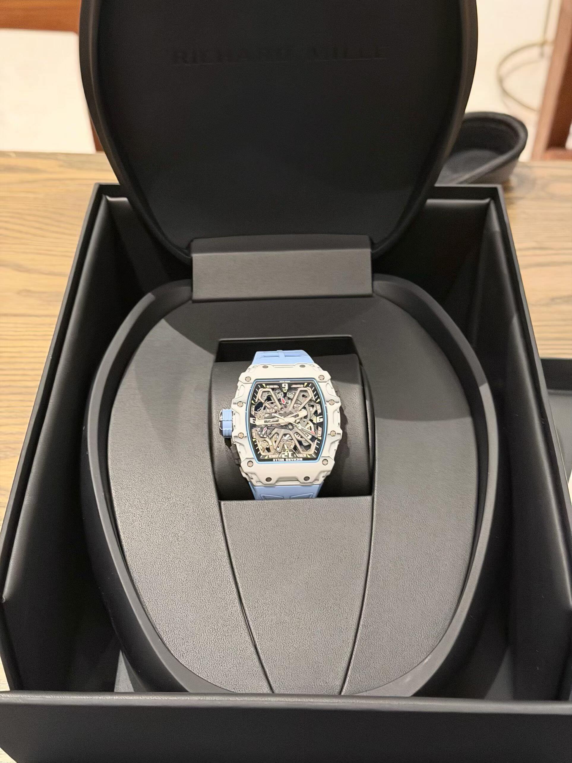 The Richard Mille RM 11-03 is a bold expression of cutting-edge design and mechanical mastery, redefined through the opulence of rose gold and the brilliance of a diamond-set bezel. Measuring 45mm, the tonneau-shaped case is crafted from luxurious 18k rose gold and perfectly complemented by a radiant array of meticulously set diamonds, creating a striking contrast between rugged engineering and refined elegance. At its core, a skeletonized automatic flyback chronograph movement offers both high-performance functionality and a mesmerizing display of mechanical complexity. The openworked dial showcases the intricate inner workings, underscoring the brand’s commitment to innovation and transparency. Paired with a black rubber strap for modern comfort and durability, the RM 11-03 is not just a timepiece—it’s a statement of power, precision, and prestige for those who demand excellence on every level.